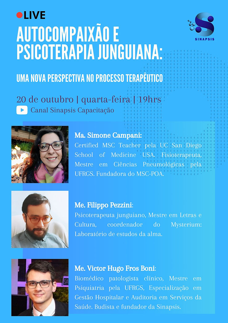 Com muita satisfação informamos que no dia 20 de Outubro de 2021, às 19 horas, ocorrerá a Live de estreia do canal Sinapsis Capacitação no Youtube. A Live intitulada, Autocompaixão … Ler mais